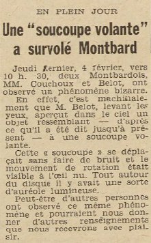 He indicates that in Le Bien public for February 6 and 7, a headline announced: "a flying saucer flew over Montbard in broad daylight."