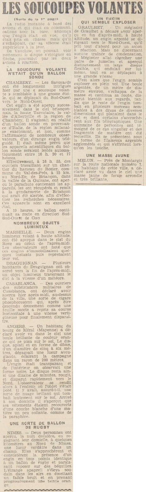 The article below was published in the daily newspaper Le Courrier de Saône-et-Loire, France, pages 1 and 8, on October 16, 1954.
