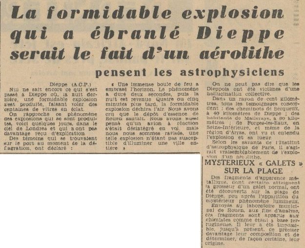 Within a 100-kilometer radius, all testimonies are consistent: railway workers in Serqueux, 40 kilometers from Dieppe; residents of Mailleraye, 60 kilometers away; people from Forges-les-Eaux in Seine-Inférieure, and even from the Arras region, all saw and heard the explosion and its flash.
