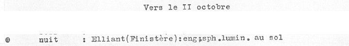 Le journal régional Le Havre du 13 octobre 1954 signalait depuis Quimper cette observation du 11 octobre 1954: