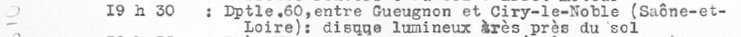 Et: "On a aperçu un objet qui a eu un aspect et une performance au-delà des possibilités des aéronefs terrestres connus. Une soucoupe a été observée par un témoin sur une route pendant cinq minutes (Andre Cognard)."
