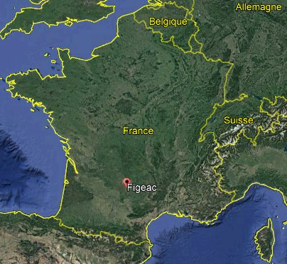 L'auteur indique qu'il y a eu une rencontre rapprochée du troisième type à Figeac, Ceint-d'Eau, dans le Lot, le 27 septembre 1954 à 08:40: