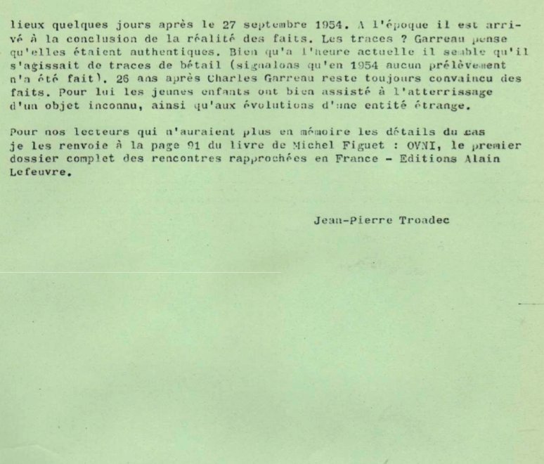 The ufologist also notes that the Prémanon case was also allegedly "explained" by Barthel and Brucker ("La grande peur martienne", Nouvelles Editions Rationalistes, Paris 1979, pp. 88-93), "but all their book is a big lie!"