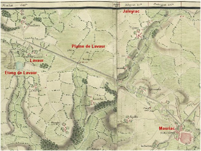 Il y a à Jaleyrac même une "Auberge de l'Etang de Lavaur". Lavaur - ou Lavaurs vers 1700 - était un hameau dépendant de Jaleyrac dans le Cantal, entre les hameaux de Boissière et Charme. L'étang de Lavaur était bien dans le Cantal, juste au sud-ouest du hameau de Lavaur, à l'est duquel se trouve la plaine de Lavaur.