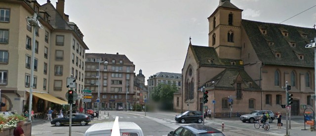 Above: view to the south from the Saint Thomas bridge in Strasbourg, by day in 2013.