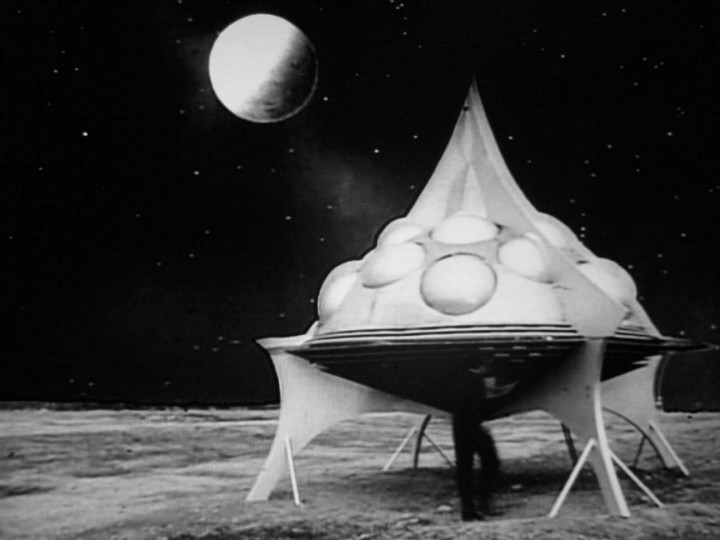 Autre chose. Le vaisseau spatial "Orion" de la série TV franco-allemande de 1966 n'a pas du tout trois pieds, mais un seul pied télescopique: