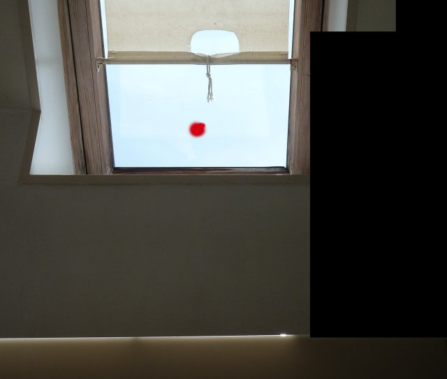 La première photo - j'ai noirci certaines parties des images pour préservation de l'identitié du témoin - montre le Vélux et l'apparence du phénomène: