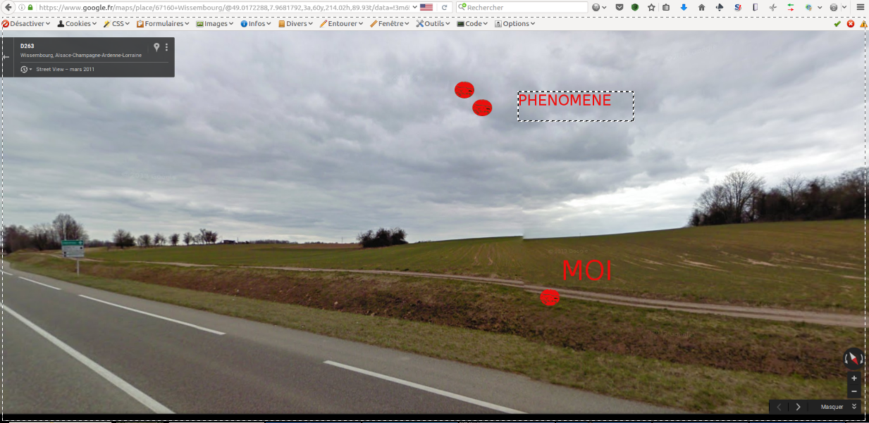 | C11 | Azimut de disparition du PAN (°) | au plus près de moi entre le Geisberg et le chemin ou j'étais |