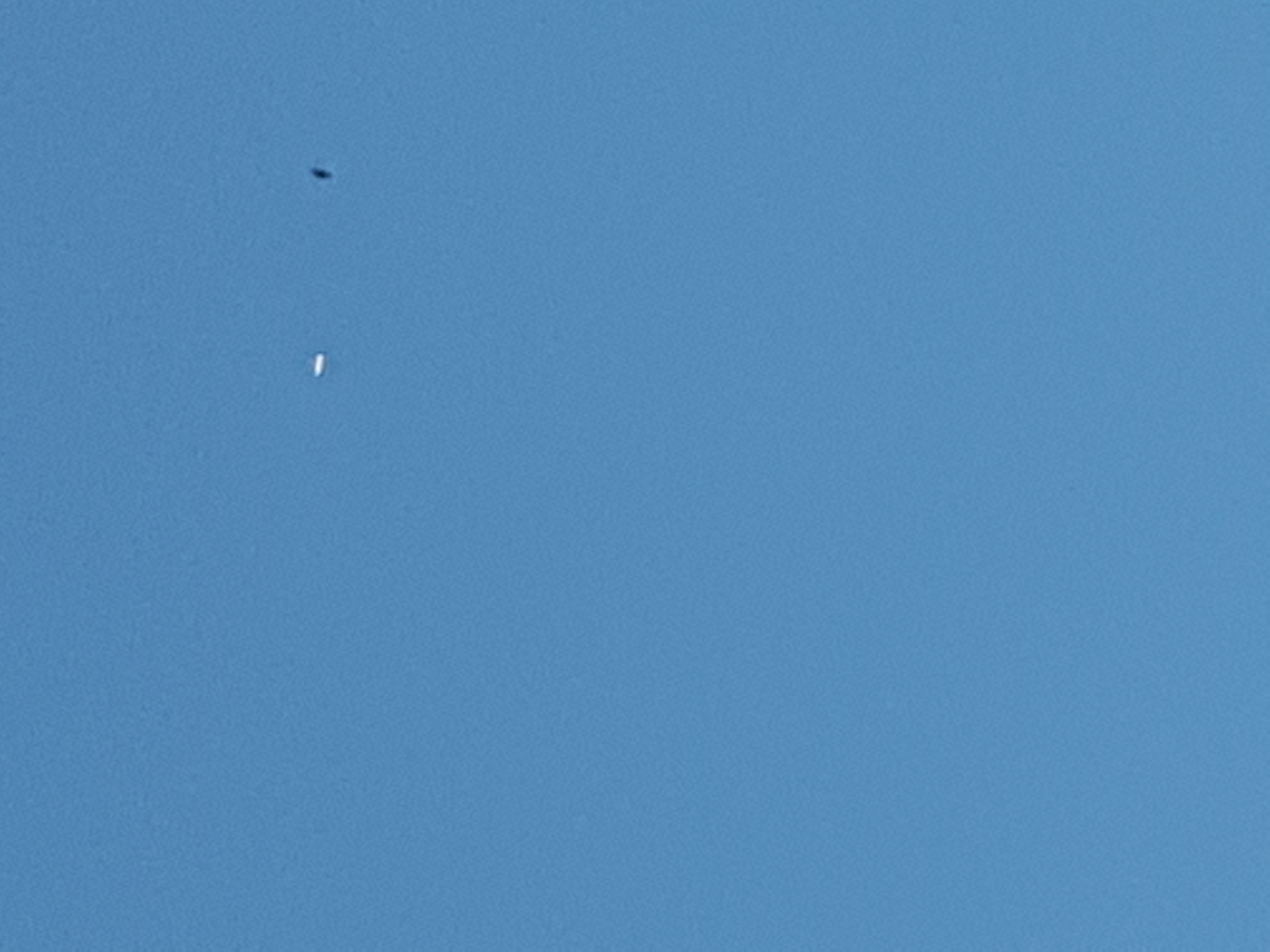 La première photo montre ce que le témoin appelle un cylindre blanc et un objet noir. Le cylindre blanc pourrait bien être un avion avec sa traînée, la chose noire pourrait être un oiseau.