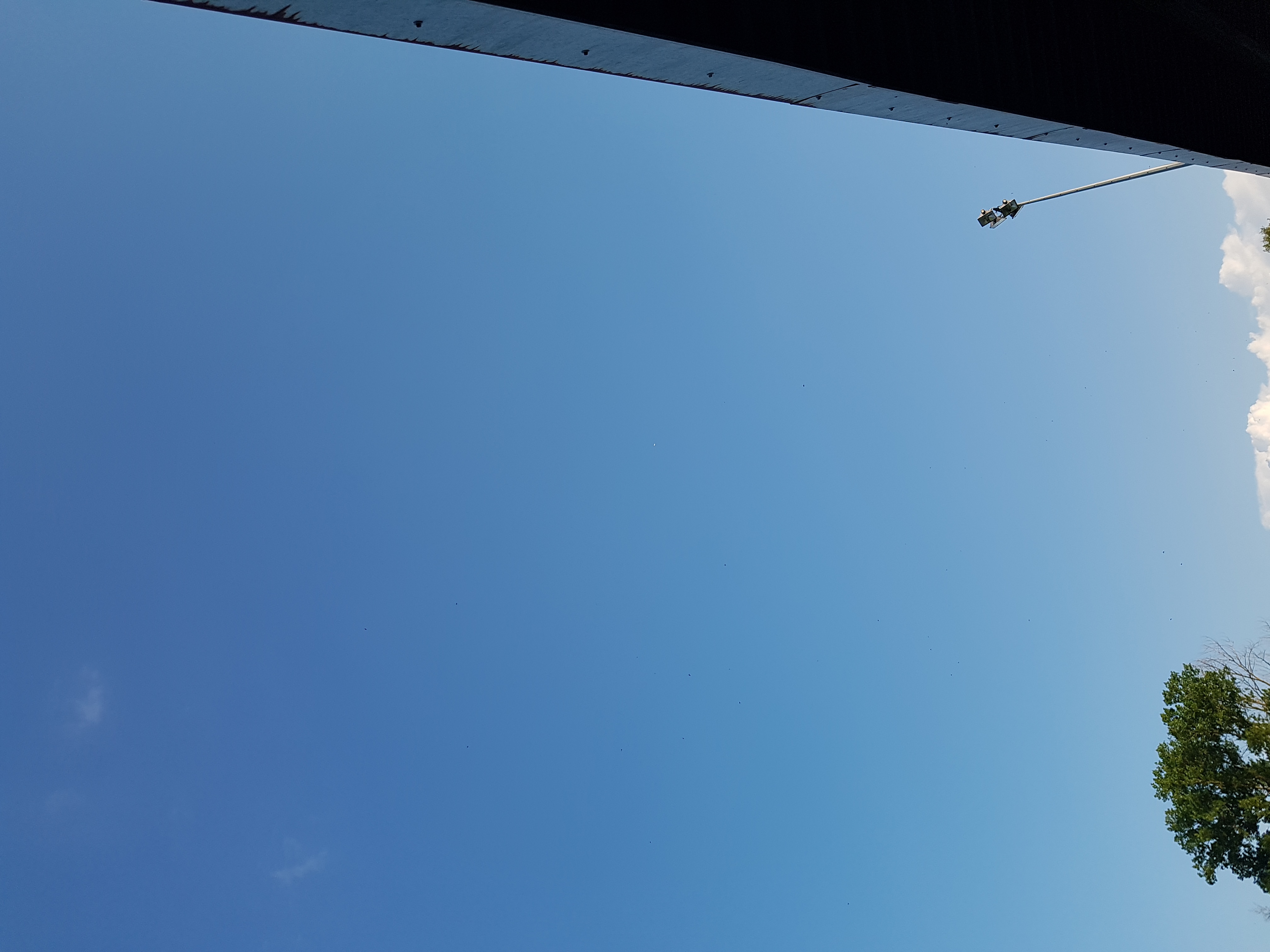 Lors de l'entraînement de rugby de mon fils, et j'ai remarqué une boule cylindrique brillante, ainsi qu'une boule noire dans le ciel. Etant donné que j'ai déjà eu deux observations en janvier 2009 et octobre 2017, j'ai eu cette fois le réflexe de prendre mon portable Samsung S7 et de faire trois photos.