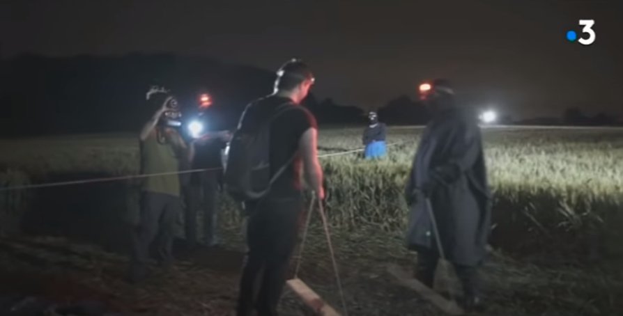 Ils ont fait devant les caméras une démonstration de création d'un crop circle, celui de Saraltroff en Moselle, de nuit, en deux heures: