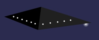 Three angles of this mass carry a large white headlight, powerful, non-blinking, the fourth angle carries a smaller light, also white, and flickering. No other detail were visible to her.