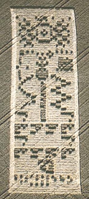 Crop circle "SETI / Arecibo / réponse extraterrestre" à Chibolton. |