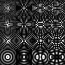 When you throw a stone in a pond of water, you get a wave pattern on the surface of the water which is a series of concentric circles formed by the waves which move away from the place where your stone hit the water surface. If you throw two stones at the same time, not too far one from the other, you will see the waves from one stone and from the other stone start to cross and make a interesting complex figure: according to places, the waves will add their effects, or will subtract their effects, or will cancel one another. If you launched two stones close enough one from the other, you can get very spectacular aspects: you see an interference pattern between the two series of circulars ripples.