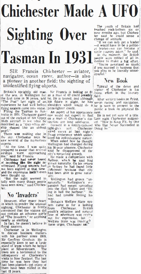 Chichester had never heard of anything like the sight he witnessed. Flying saucers had not been sighted at that time and the expression hadn't even been thought up.