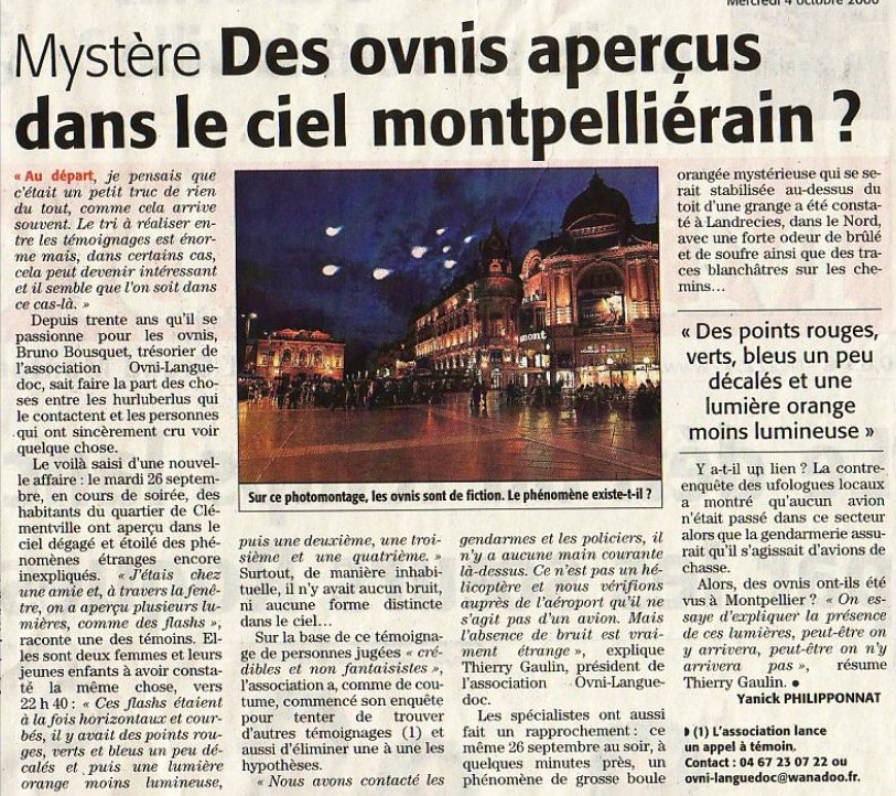 Alors, des ovnis ont-ils çeacute;tçeacute; vus çagrave; Montpellier? "On essaie d'çecirc;tre rigoureux, peut-çecirc;tre que dans quelques semaines une explication rationnelle arrivera," rassure Thierry Gaulin.