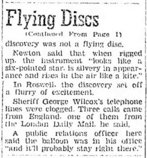 La découverte de Brazel a été rapportée tard hier par le lieutenant Walter Haut, agent des relations publiques du Terrain d'Aviation de l'Armée de Roswell comme étant l'une des soucoupes volantes qui ont rendu perplexes et préoccupés les résidents de 44 états au cours des dernières semaines.