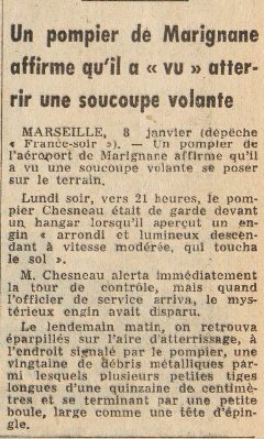 If we are to believe the authorities at Marignane airport (1), the night of Monday January 4, 1954, would have been a night like all the others, a little colder however, because of the icy wind which swept the strip. However, that evening, at 9 p.m., it was no longer a customs officer, but a fireman - Mr. Chesneau - who witnessed a stunning display.
