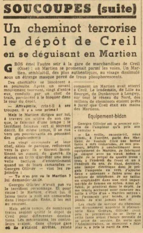 Georges Ollivier hadn't seen the terrifying figure. And for good reason! The Martian was him. He let his coworkers stew in anxiety all night. Finally, he told them the truth.